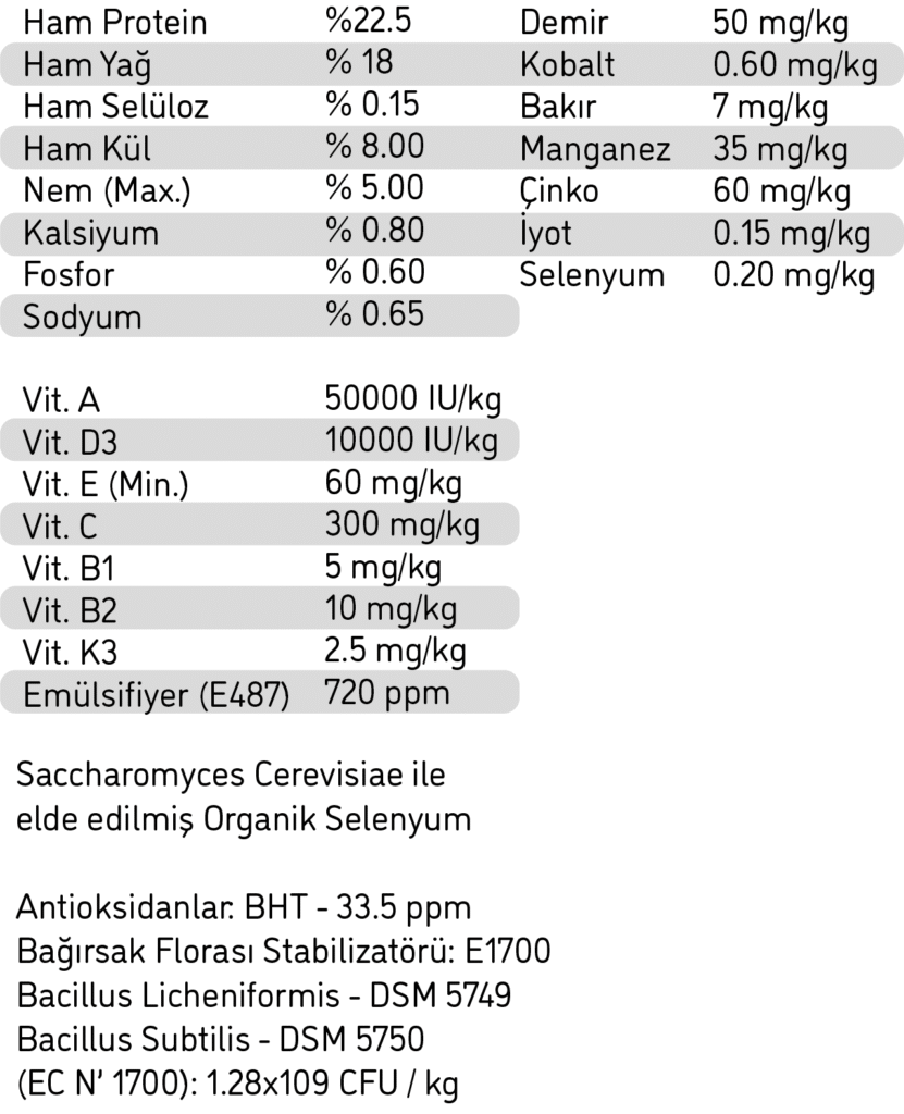 BU BİR İLAÇ DEĞİL, YEM PREMİKSİDİR. TEDAVİ AMACIYLA KULLANILAMAZ.